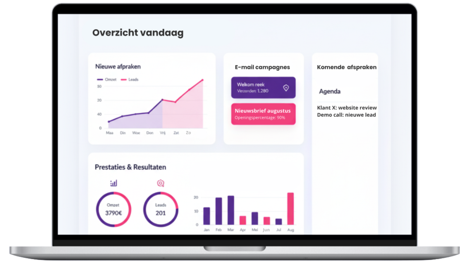 Losse onderdelen: je website, reviews, agendabeheer en e-mails werken niet samen vanuit één centraal punt.