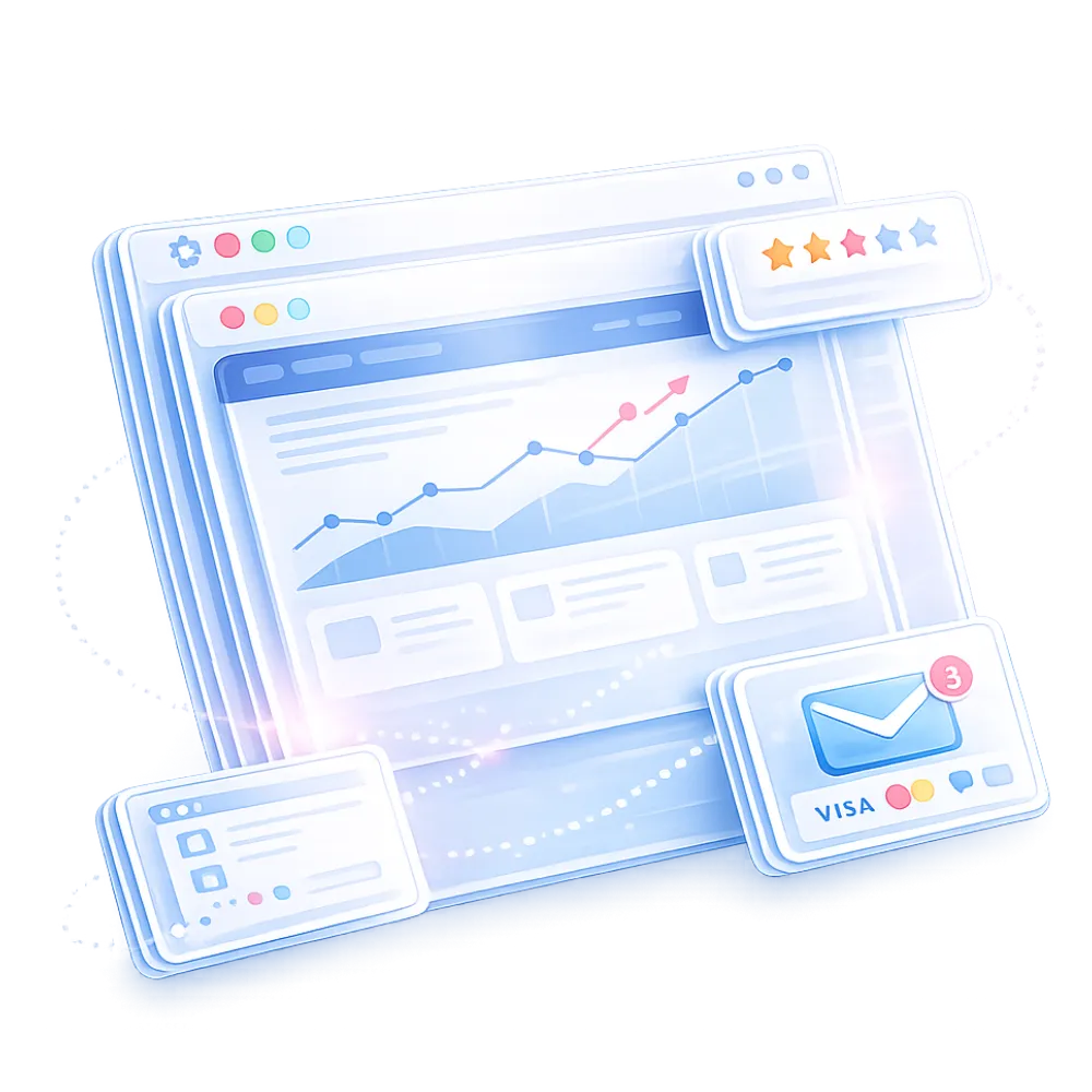 Onze aanpak combineert techniek, automatisering en design & development in één systeem. Dat betekent minder losse tools, meer overzicht en omzet én beter inzicht in je klanten: