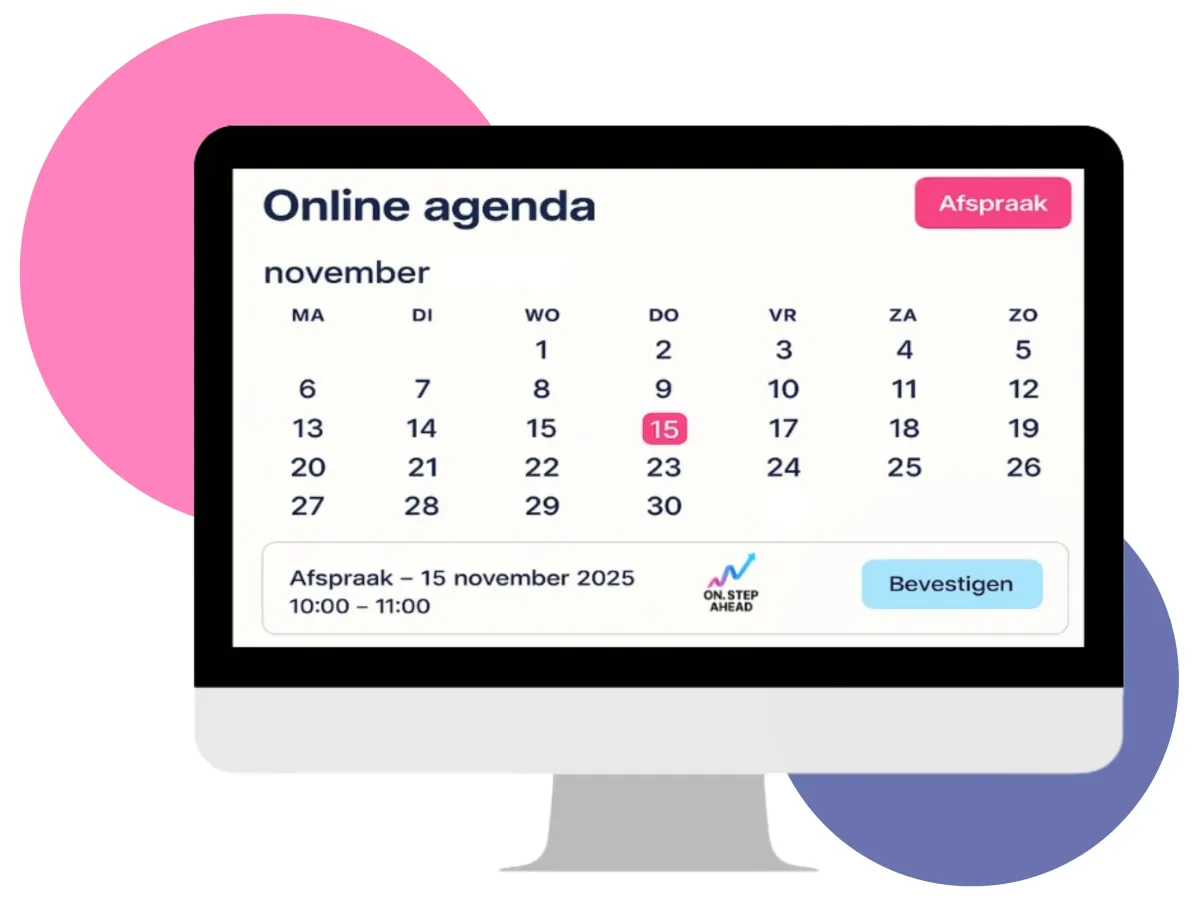 Klaar om jouw afspraken slimmer te plannen? Wij richten het systeem voor je in en testen alles vooraf. Plan een vrijblijvende kennismaking en ontdek wat dit voor jou oplevert.